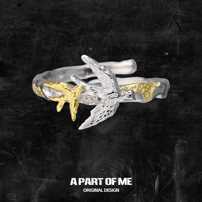 Swallows Bird S925 Sterling Silver 18K Gold Plating Adjustable Rings
