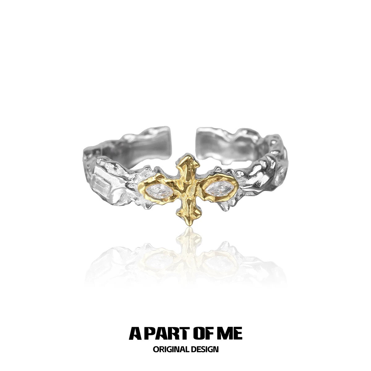 Vintage Maillard S925 Sterling Silver 18K Gold Plating White Zircon Ring
