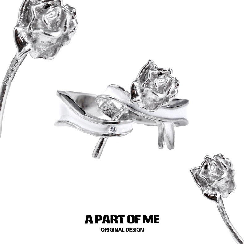 White Ribbon Rose S925 Sterling Silver White Resin Ribbon Adjustable Ring