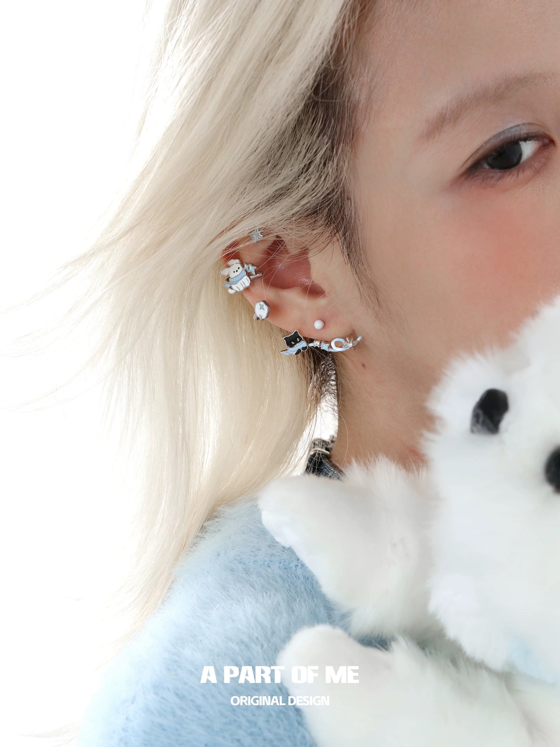 Windy Black Cat & White Dog 18K Platinum Plating Winter Ear Wraps